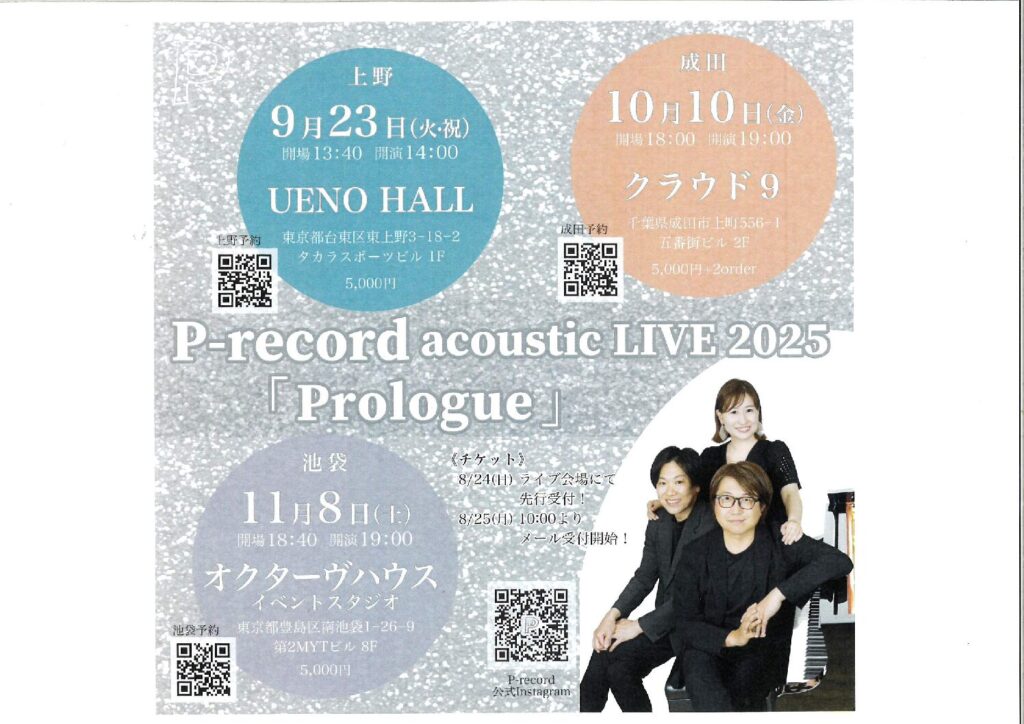 2025.11.07 P-record acoustic LIVE 2025「Prologue」 ◆日時:2025年11月8日(土) 開場18:40 開演19:00 ◆会場:オクターヴハウス イベントスタジオ ◆料金:5,000円