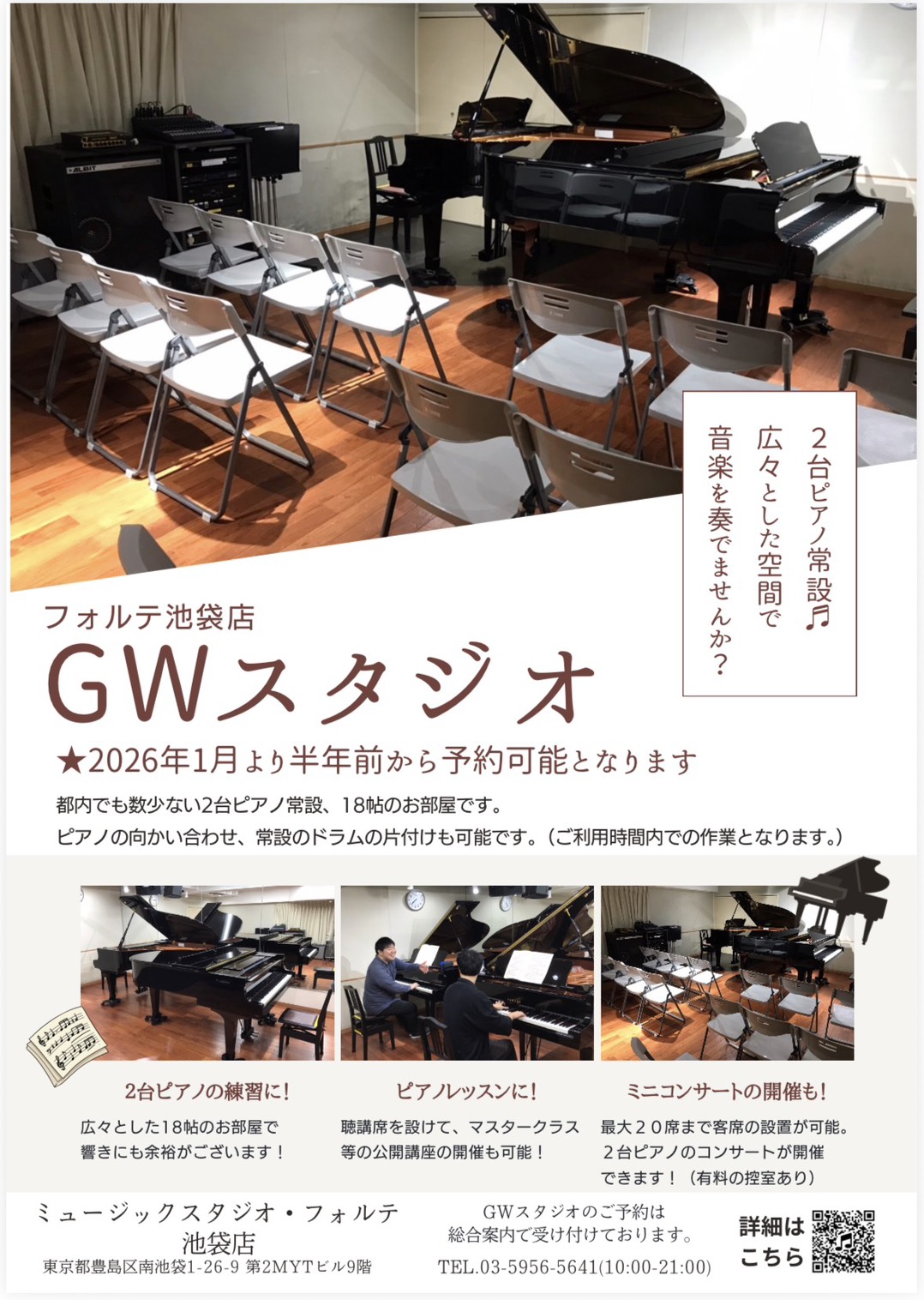 【グランドピアノ2台、GWスタジオのご予約に関して】